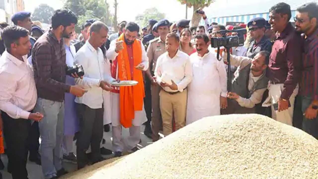 लाडवा मंडी में धान खरीद अभियान की शुरुआत करते मुख्यमंत्री नायब सैनी व अन्य।