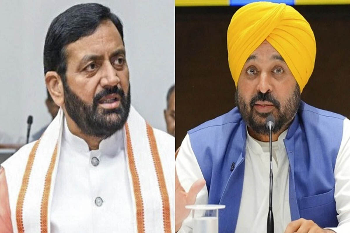 हरियाणा के मुख्यमंत्री नायब सिंह सैनी और पंजाब के मुख्यमंत्री भगवंत मान।
