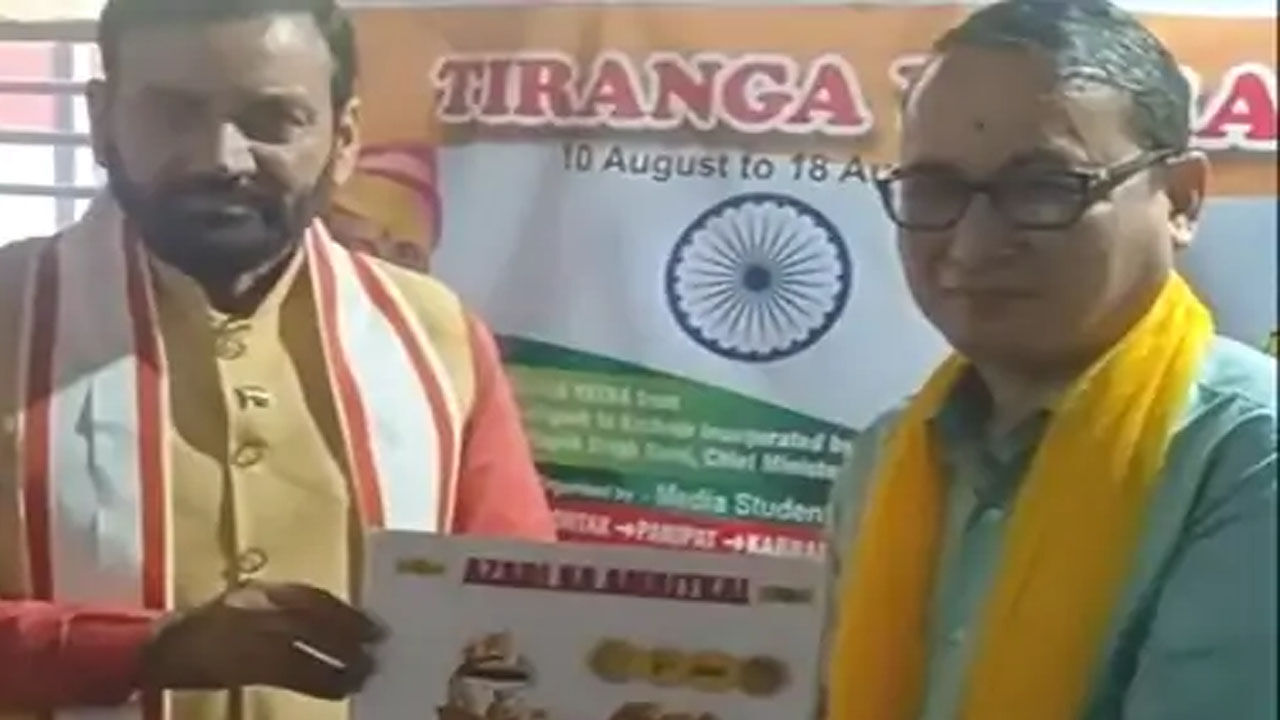 तिरंगा यात्रा से पूर्व चंडीगढ़ में सीएम नायब सैनी को स्मृति चिह्न भेंट किया गया।