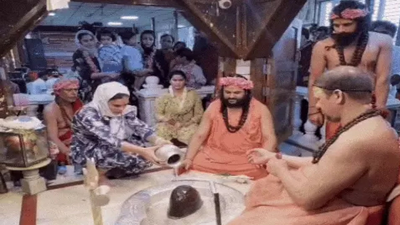 हरिद्वार में पूजा करती अरमान मलिक की पत्नी पायल।