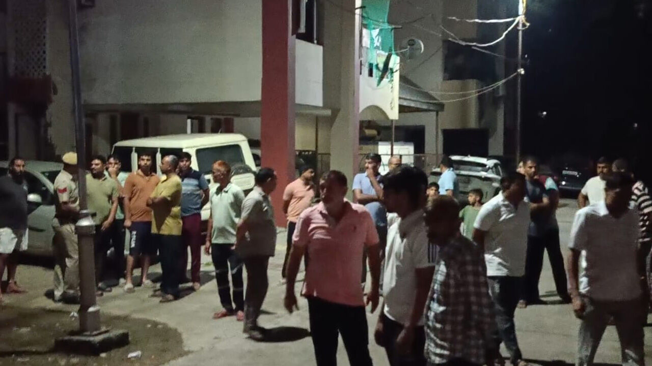 सोनीपत पुलिस लाइन में लिफ्ट हादसे के बाद मौके पर जुटी भीड़।