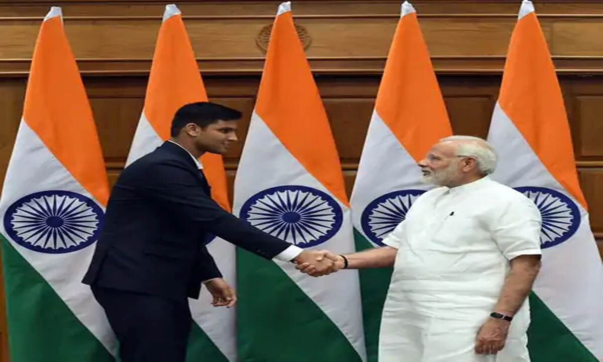 प्रधानमंत्री नरेन्द्र मोदी से हाथ मिलाते नमन।