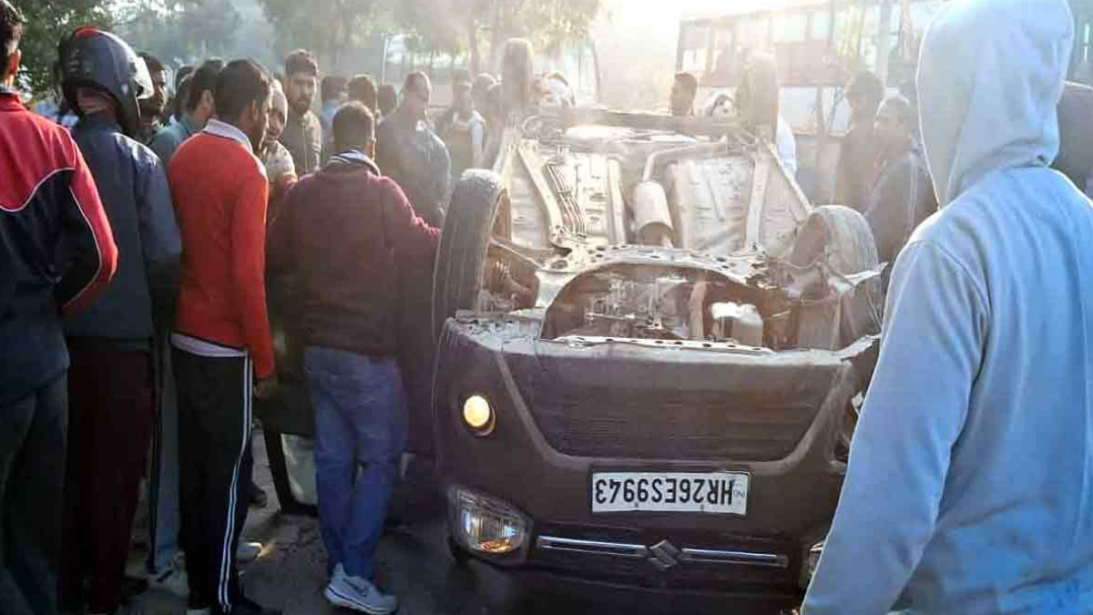 फिल्मी स्टाइल में डिवाइडर से टकराकर पलटी कार: हवा उछलकर दूसरी सड़क पर गिरी, बाल-बाल बचे गाड़ी सवार