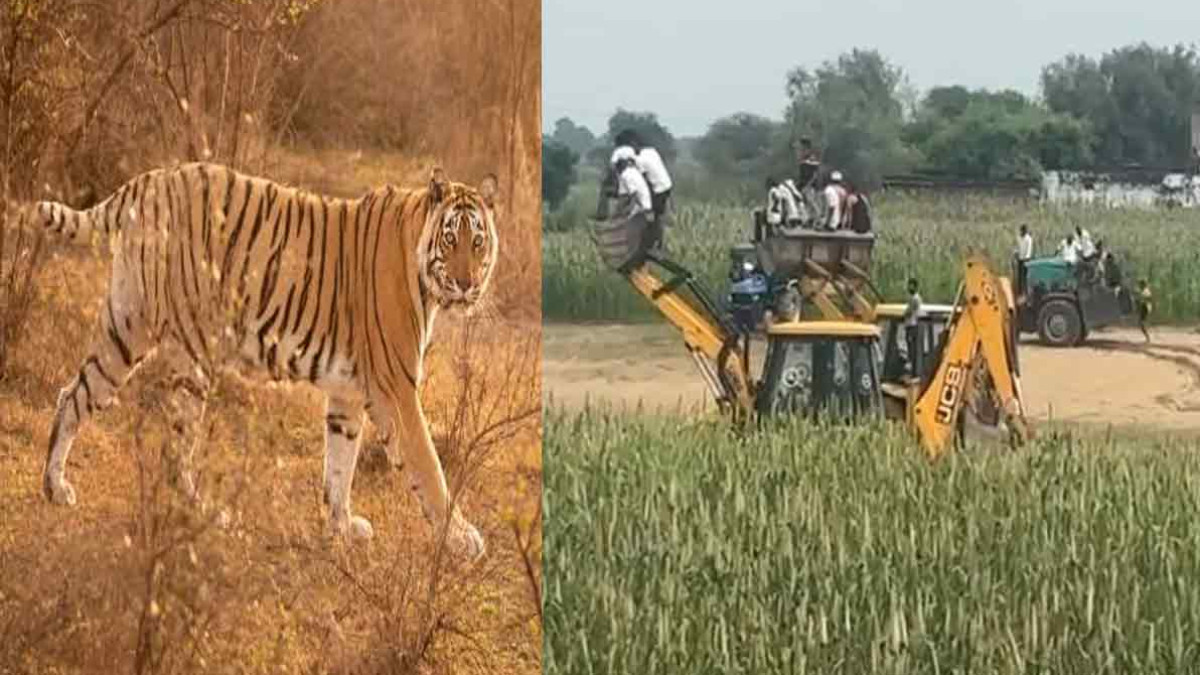 वन विभाग की टीम ने मौके पर पहुंचकर काफी देर तक बाघ को पकड़ने का प्रयास शुरू नहीं किया, जिसके कारण ग्रामीणों ने हंगामा करना शुरू कर दिया। मौके पर पहुंची पुलिस ने ग्रामीणों को समझा कर शांत करवाया। विरोध के बाद जयपुर से चिकित्सकों की टीम मौके पर पहुंची तथा ग्रामीणों ने खेत को चारों ओर से घेरकर चार अर्थमूवर मशीनों से बाघ को तलाश करना शुरू कर दिया। शाम तक विभाग की टीम व ग्रामीण बाघ को तलाश करते रहे, लेकिन बाघ को काबू नहीं कर पाए। वन विभाग की टीम बाघ को पकड़ने का प्रयास कर रही है।