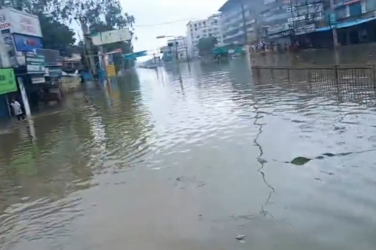 रेवाड़ी के धारूहेड़ा क्षेत्र में सड़क पर जमा दूषित पानी।