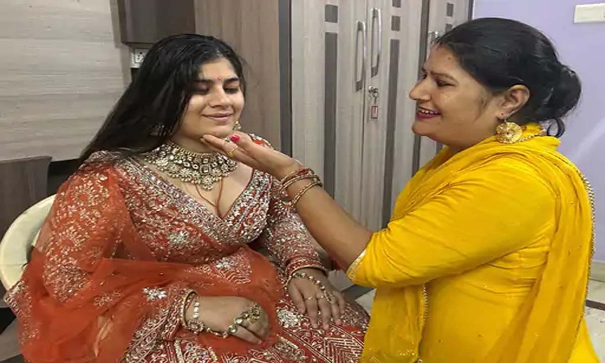 रोहतक में समारोह के दौरान केसर रस्म के लिए लब्धि को उनकी मां सेंजल ने तैयार किया।