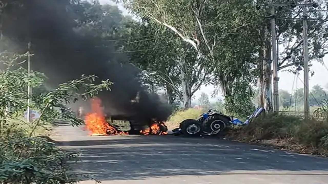 रोहतक में कार-ट्रैक्टर टक्कर के बाद धमाका