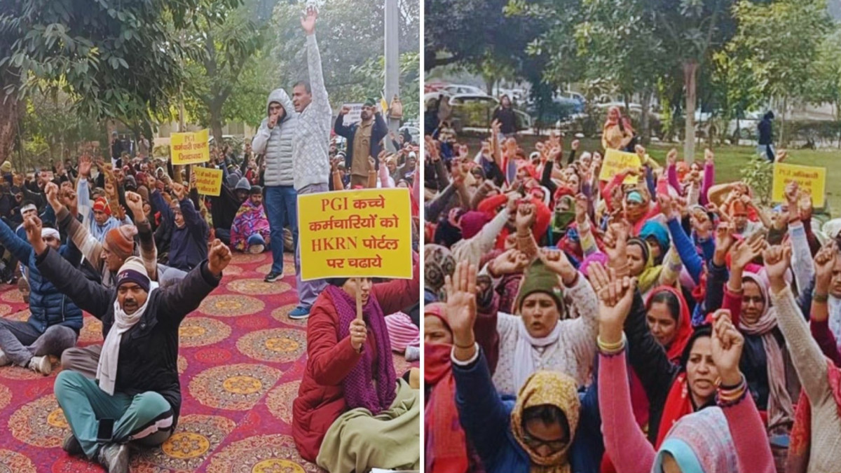 Rohtak PGI Employees: ठेका कर्मचारियों ने की रोजगार निगम में शामिल करने की मांग, शुरू किया अनिश्चित काल के लिए हड़ताल