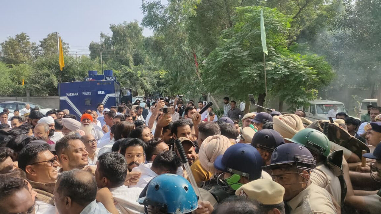 सिरसा में धरने पर बैठे विधायक: प्रशासन ने समर्थकों के साथ बैठक में जाने से रोका, धक्का-मुक्की