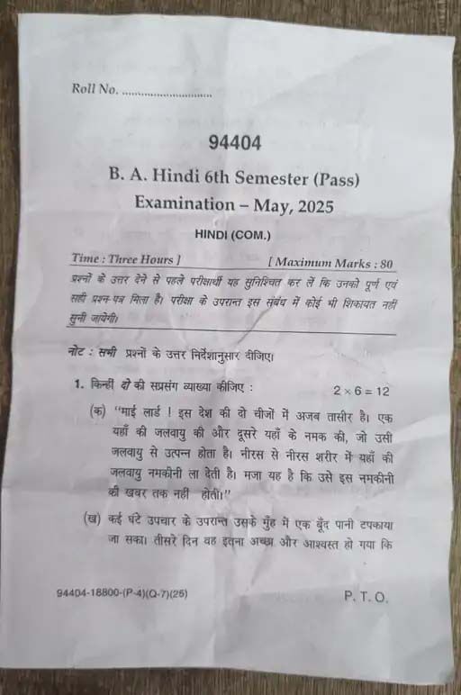 एमडीयू की बीए छठे सेमेस्टर की परीक्षा में लापरवाही, हिंदी का पेपर लीक होकर फोटोस्टेट दुकानों तक पहुंचा, छात्रों ने बनाई चीट शीट।