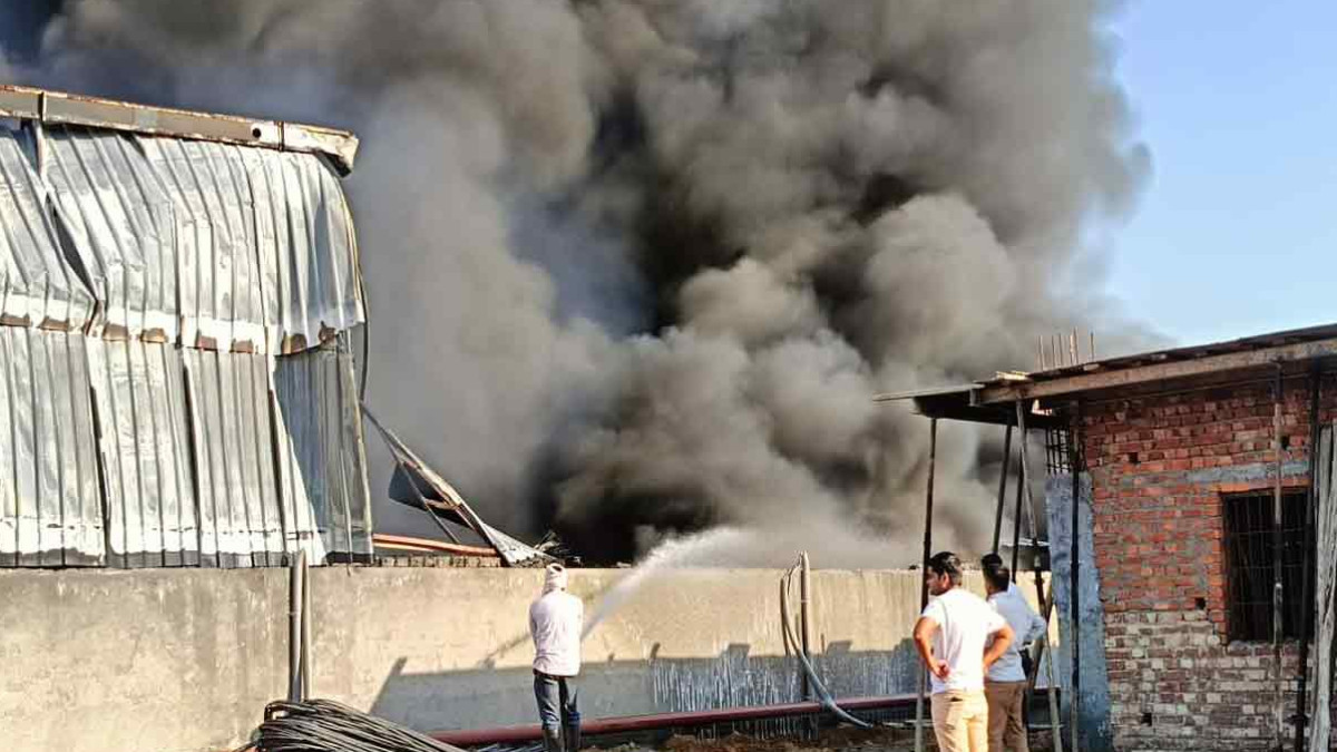 गैस लाइटर फैक्टरी में लगी आग: टीन शेड जलकर गिरा, कर्मचारियों ने भागकर बचाई जान, दमकल विभाग ने पाया काबू