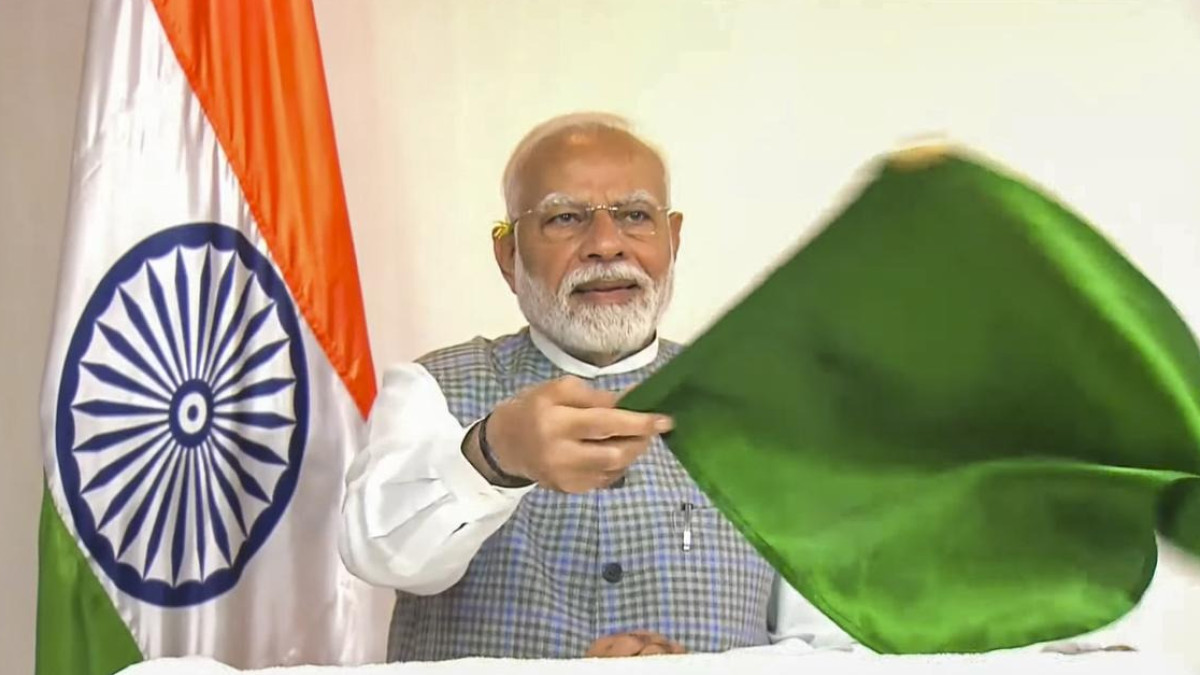 #WATCH | PM Modi virtually flags off the Tatanagar-Patna Vande Bharat train at Tatanagar Junction Railway Station.