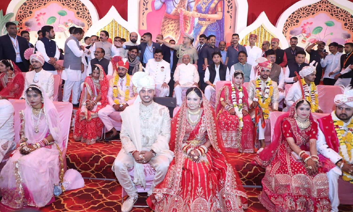 रविवार को उज्जैन के विशाल पंडाल में एक ही मंडप और एक ही समय पर 21 जोड़ों का पाणिग्रहण संस्कार संपन्न हुआ। इनमें मुख्यमंत्री के पुत्र डॉ. अभिमन्यु और पुत्रवधू डॉ. इशिता के साथ-साथ समाज के विभिन्न वर्गों- अनुसूचित जाति, जनजाति, मध्यम वर्ग एवं निम्न-मध्यम वर्ग के युवक-युवतियों का विवाह भी शामिल था।