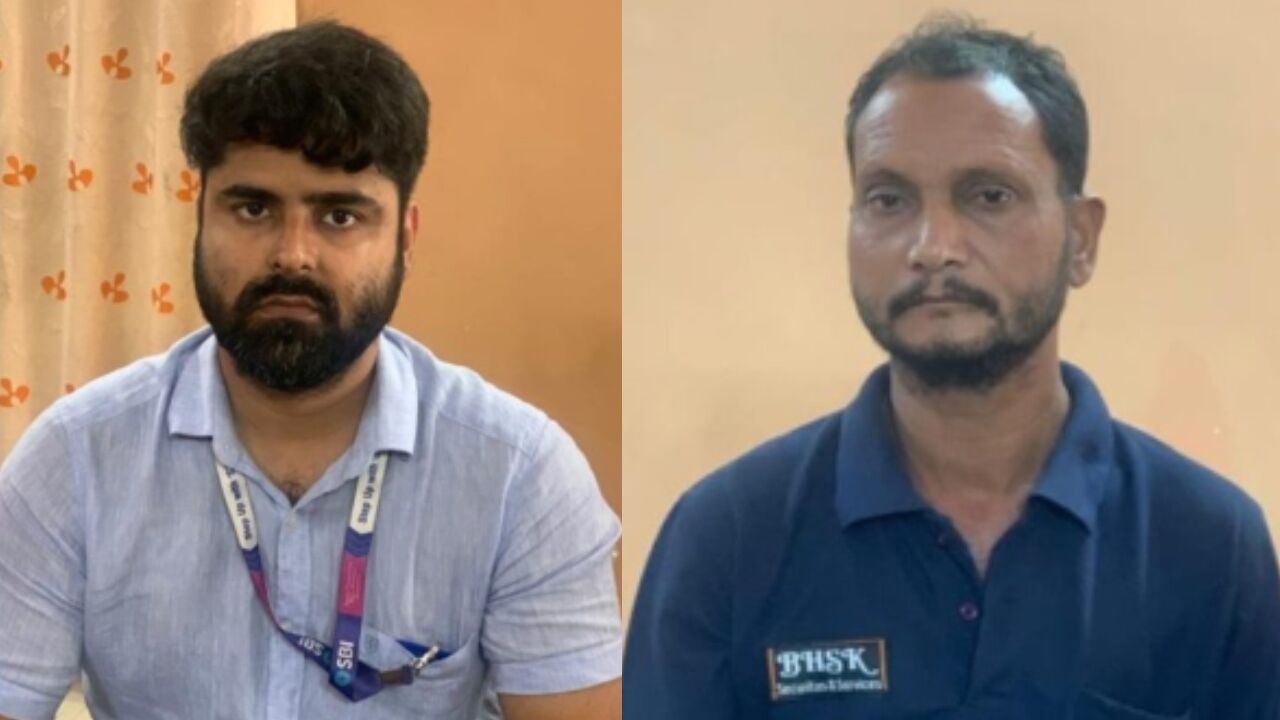 झाबुआ के खवासा गांव में रिश्वत लेते ट्रैप हुए SBI के ऋषभ शुक्ला और हीरालाल लोहार।