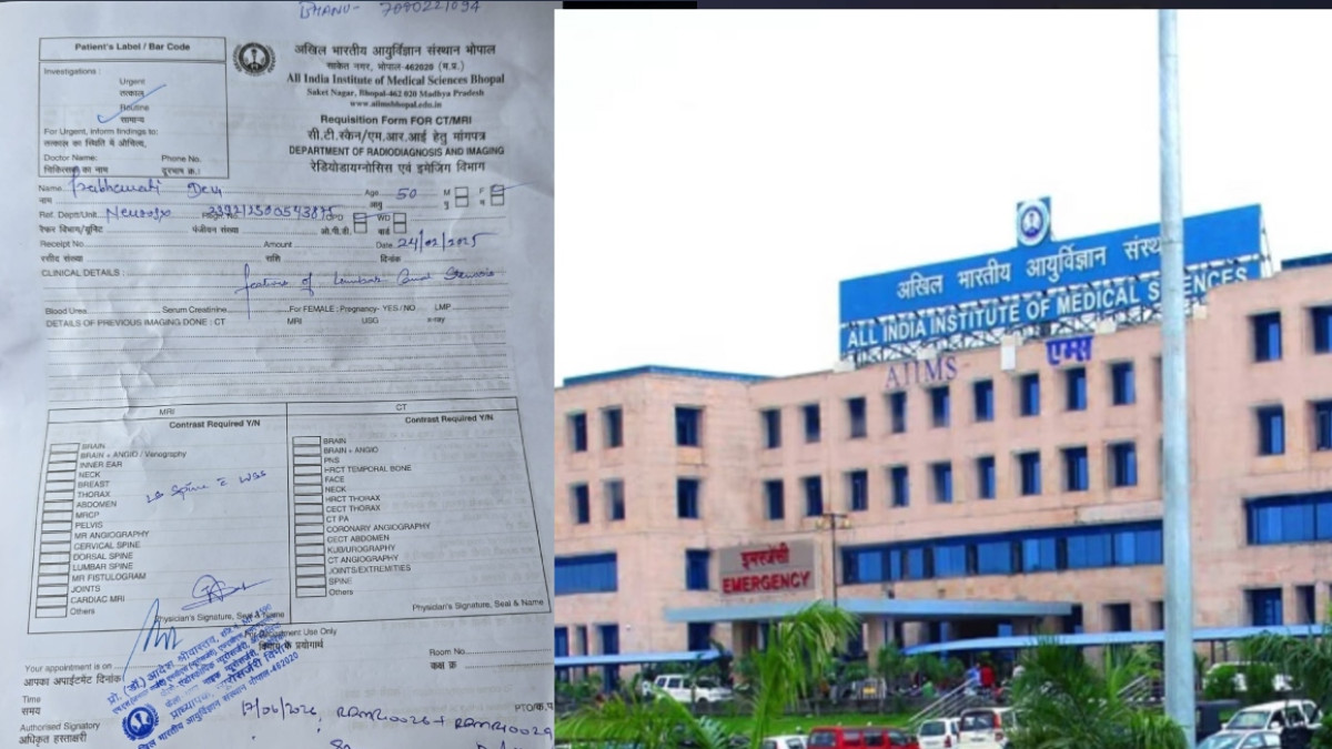 भोपाल निवासी भानु प्रभाकर अपनी 50 वर्षीय मां प्रभावती देवी को इलाज के लिए एम्स भोपाल लेकर गए थे। वहां उन्हें प्रो. (डॉ.) आदेश श्रीवास्तव को दिखाया गया, जिन्होंने तत्काल एमआरआई (MRI) जांच कराने की सलाह दी। लेकिन एम्स प्रशासन ने जांच के लिए 17 जून 2026 की तारीख दी! यानी लगभग 16 महीने बाद।