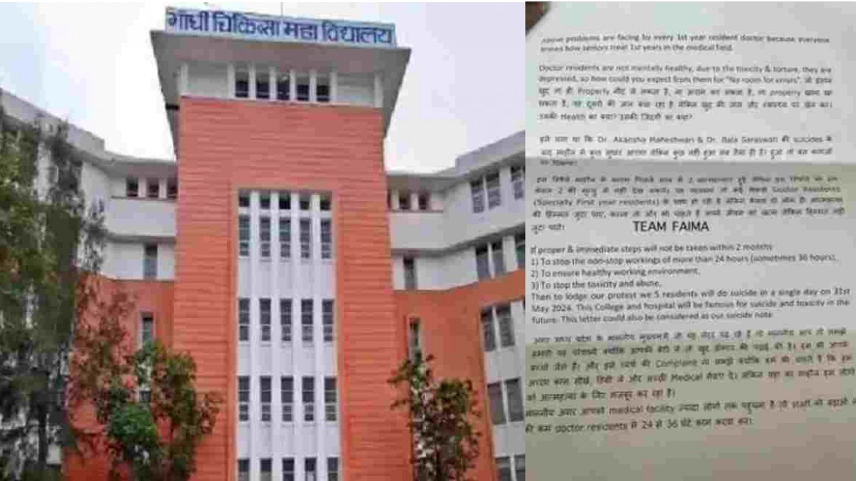 Bhopal Gandhi Medical College: गांधी मेडिकल कॉलेज भोपाल के पांच रेसीडेंड डॉक्टरों ने सोमवार 15 अप्रैल को FAIMA अध्यक्ष को पत्र लिखकर सामूहिक आत्महत्या की चेतावनी दी है। कहा, यहां माहौल टॉक्सिक है।