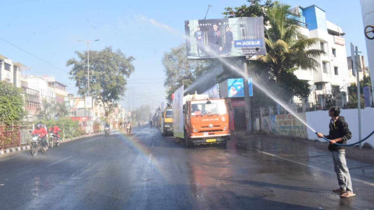 भोपाल में वायु प्रदूषण (Bhopal AQI) का स्तर काफी बढ़ गया है। भोपाल नगर निगम द्वारा मंगलवार को पेड़-पौधे और सड़कों पर जेटिंग स्प्रे किया गया।