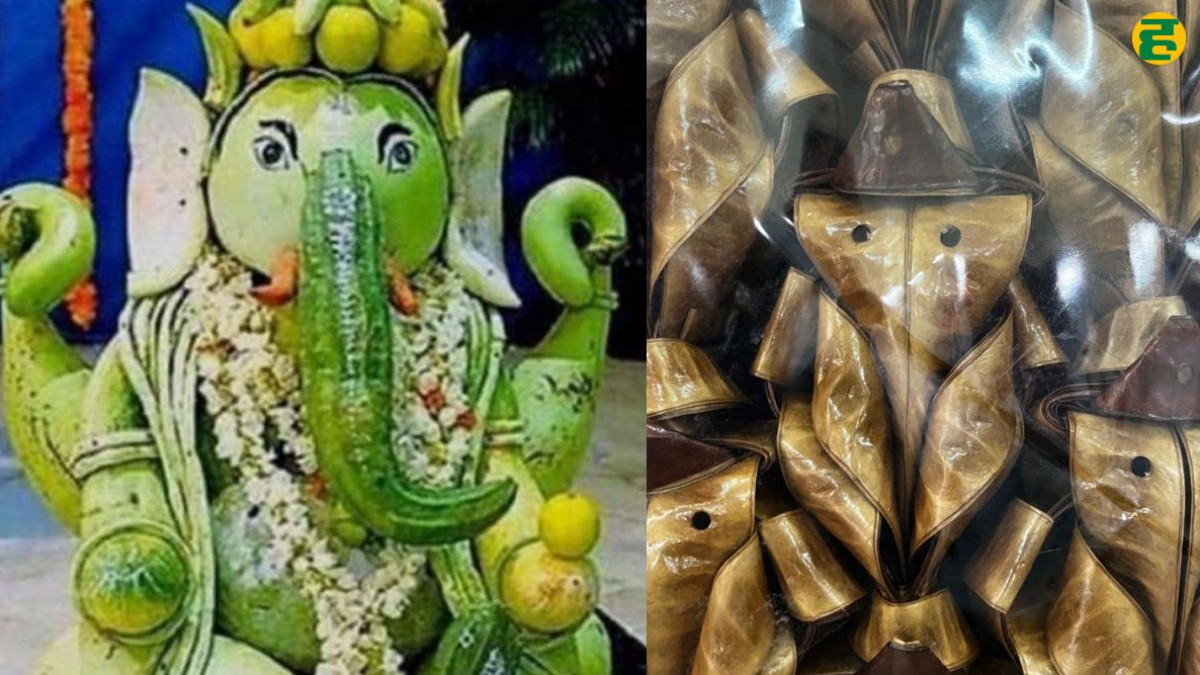 फल, सब्जियों, अखरोट, नारियल की छाल से बनाए गणपति