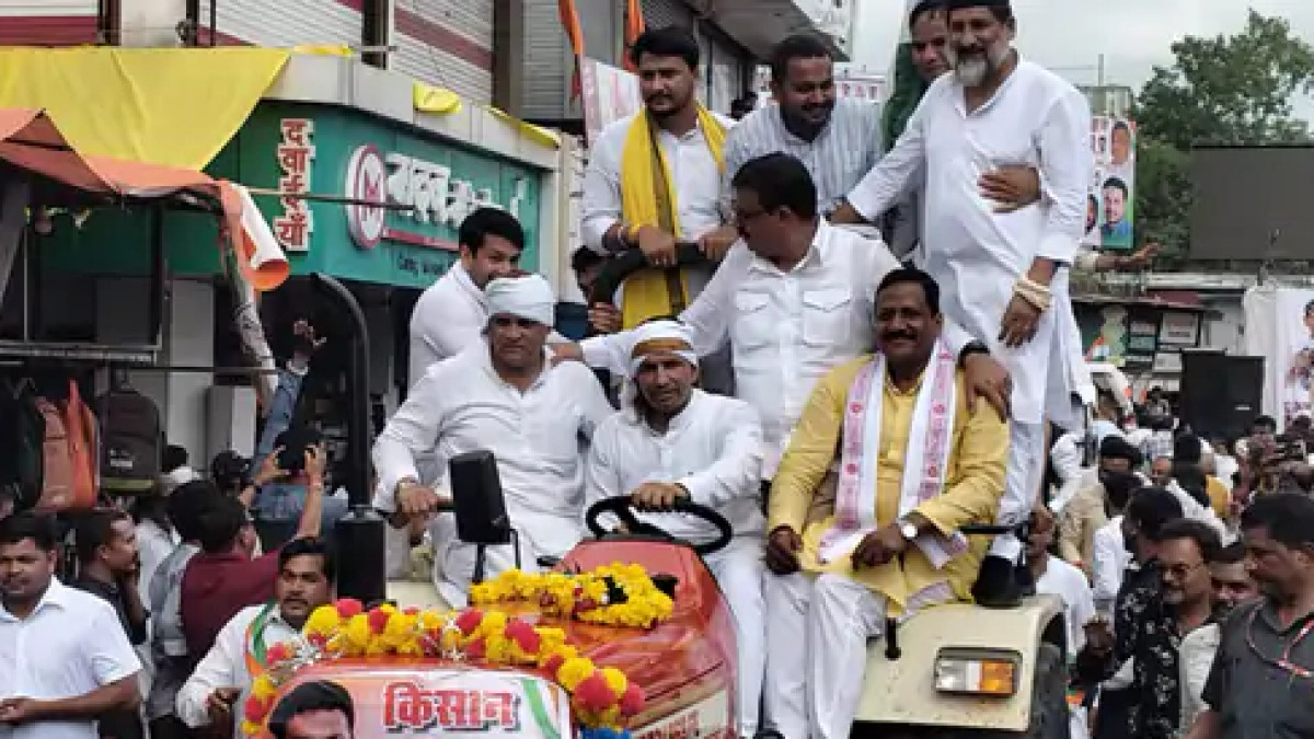 MP Congress News: नर्मदापुरम में पीसीसी चीफ जीतू पटवारी समेत कांग्रेस नेताओं ने ट्रैक्टर से किसान न्याय यात्रा निकाली।