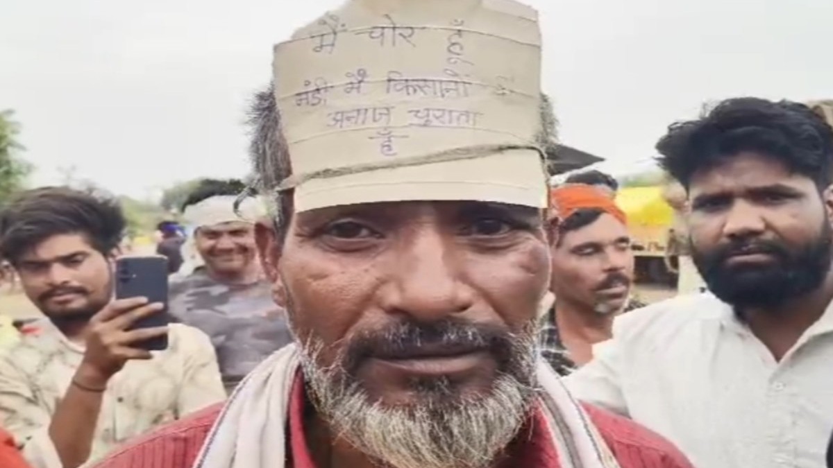 MP News: गुना में किसानों ने चोरी के एक आरोपी को अनोखे अंदाज में सजा दी। किसानों ने चोर के सिर पर एक कागज चिपका दिया जिसमें लिखा- मैं चोर हूं, किसानों की फसल चुराता हूं।