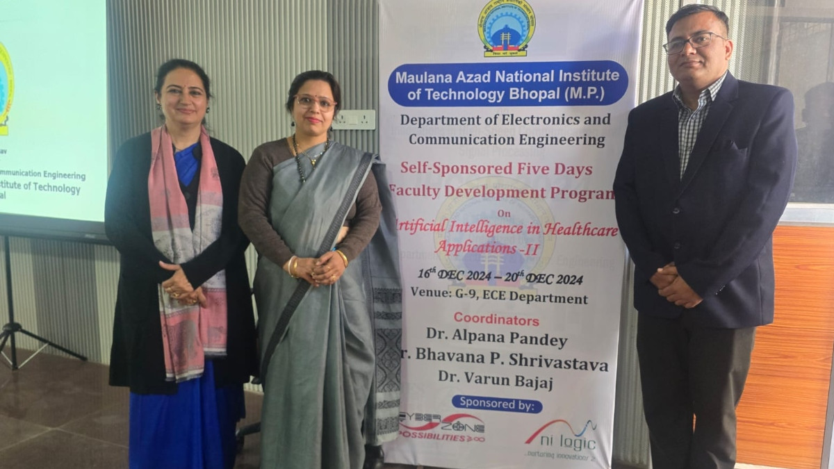 भोपाल( संजीव सक्सेना)। राजधानी स्थित मौलाना आजाद राष्ट्रीय प्रौद्योगिकी संस्थान (MANIT Bhopal) के इलेक्ट्रॉनिक्स और संचार विभाग इंजीनियरिंग विभाग ने 16 से 20 दिसंबर के बीच आर्टिफिशियल इंटेलिजेंस इन हेल्थ केयर एप्लीकेशन-द्वितीय पर पांच दिवसीय संकाय विकास कार्यक्रम का आयोजन किया। इस समारोह में स्वास्थ्य सेवाओं में एआई के इस्तेमाल को लेकर जानकारी दी गई।