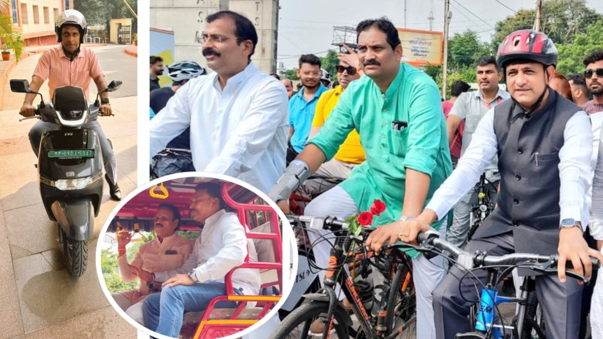 No Car Day: ई-रिक्श में मंत्री, बाइक पर कलेक्टर और महापौर ने चलाई साइकिल, देखें इंदौर की रोचक तस्वीरें