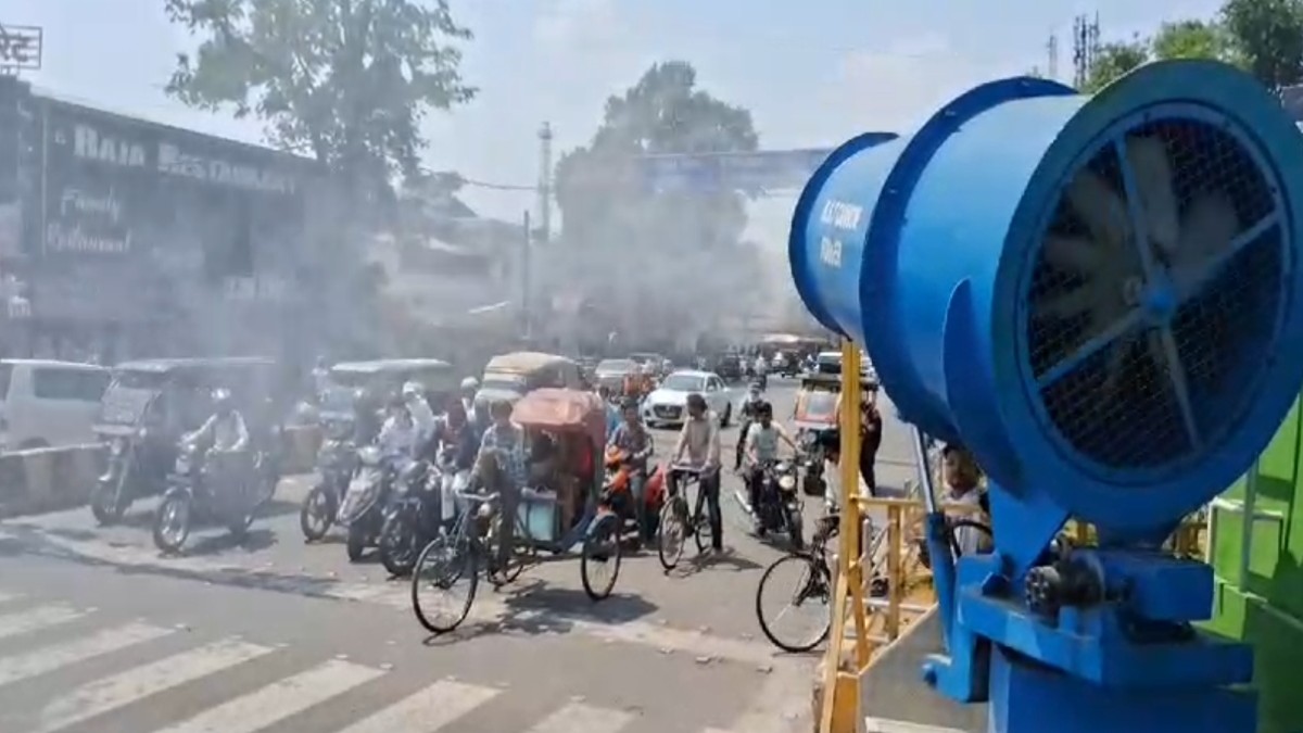 जबलपुर नगर निगम की अनोखी पहल: चौराहों पर लगाई डिफोगर मशीन, लोग गर्मी के बीच ले रहे बौछार का आनंद