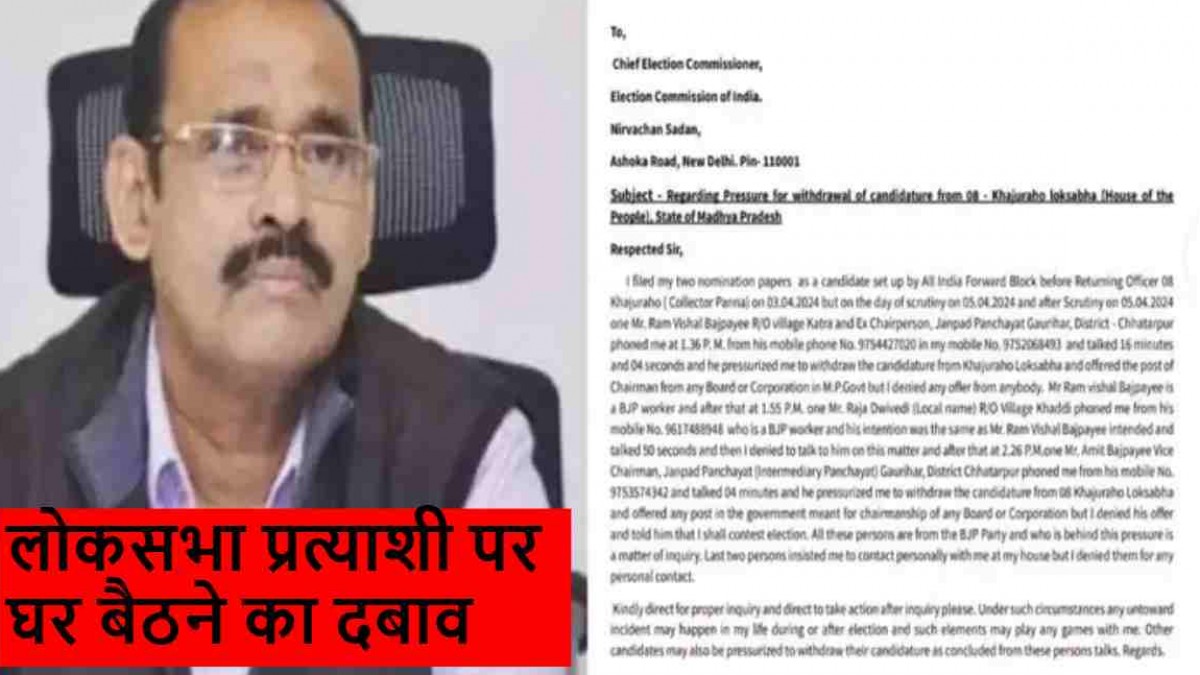 Khajuraho Lok Sabha Election Update: खजुराहो लोकसभा सीट से फॉरवर्ड ब्लाक के प्रत्याशी आरबी प्रजापति ने चुनाव आयोग को बताया कि 5 अप्रैल को उनके पास तीन अलग-अलग नंबर से फोन आए और नामांकन वापस लेने को कहा गया।