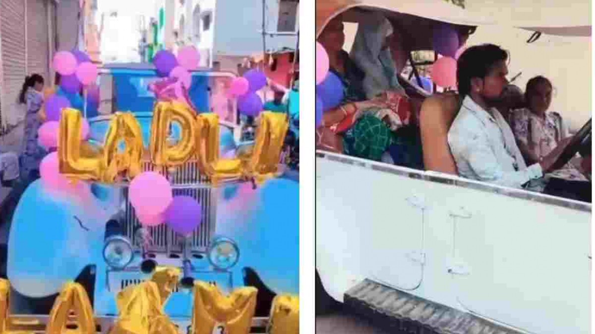 Ladli Laxmi Griha Pravesh in Bhopal: भोपाल के बरखेड़ी निवासी प्रकाश मालवीय ने बेटी के जन्म पर न सिर्फ ढोल नगाड़े बजवाए। अस्पताल से छुट्टी होने पर खुली जीप में राजकुमारी तरह गृह प्रवेश कराया।