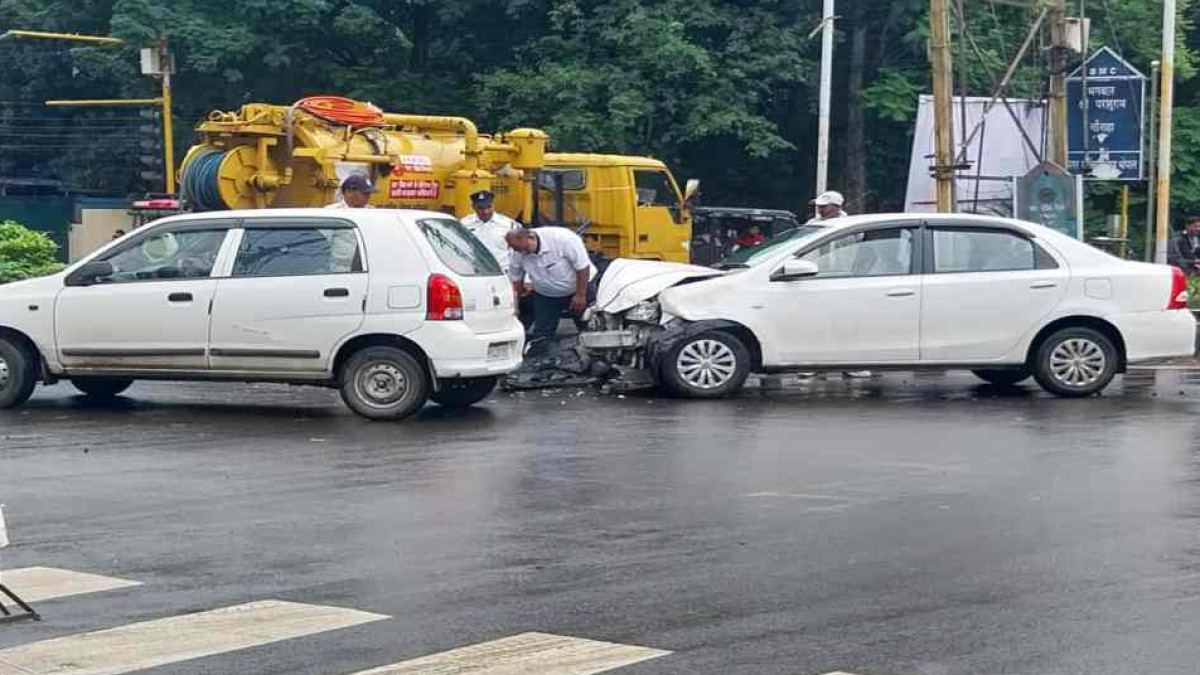 सामने से आ रही एक कार ने जोरदार टक्कर मार दी