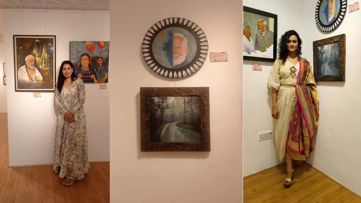 दुबई में मोदी@20 पेंटिंग एग्जीबिशन: भोपाल की सुरभी और पायल की कलाकृतियों ने किया आकर्षित