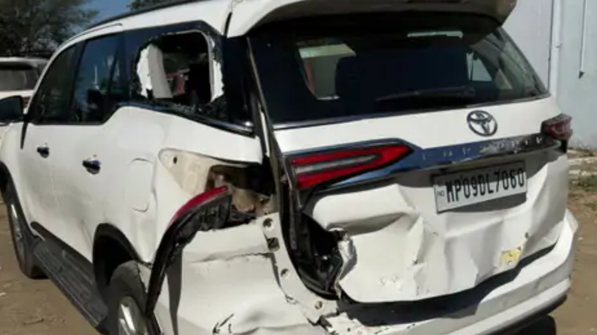 फॉर्च्यूनर कार का पिछले हिस्सा क्षतिग्रस्त