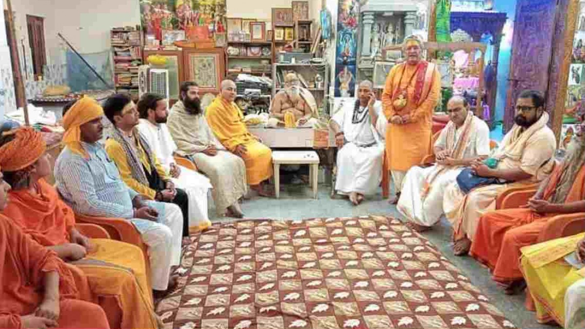 Radha Rani controversy: धर्म रक्षा संघ का प्रतिनिधिमंडल शुक्रवार को संत प्रेमानंद से मिलने श्रीराधा केली कुंज पहुंचा। बरसाना में 24 जून को पं प्रदीप मिश्रा के खिलाफ हुई महापंचायत से अवगत कराते हुए मार्गदर्शन मांगा।