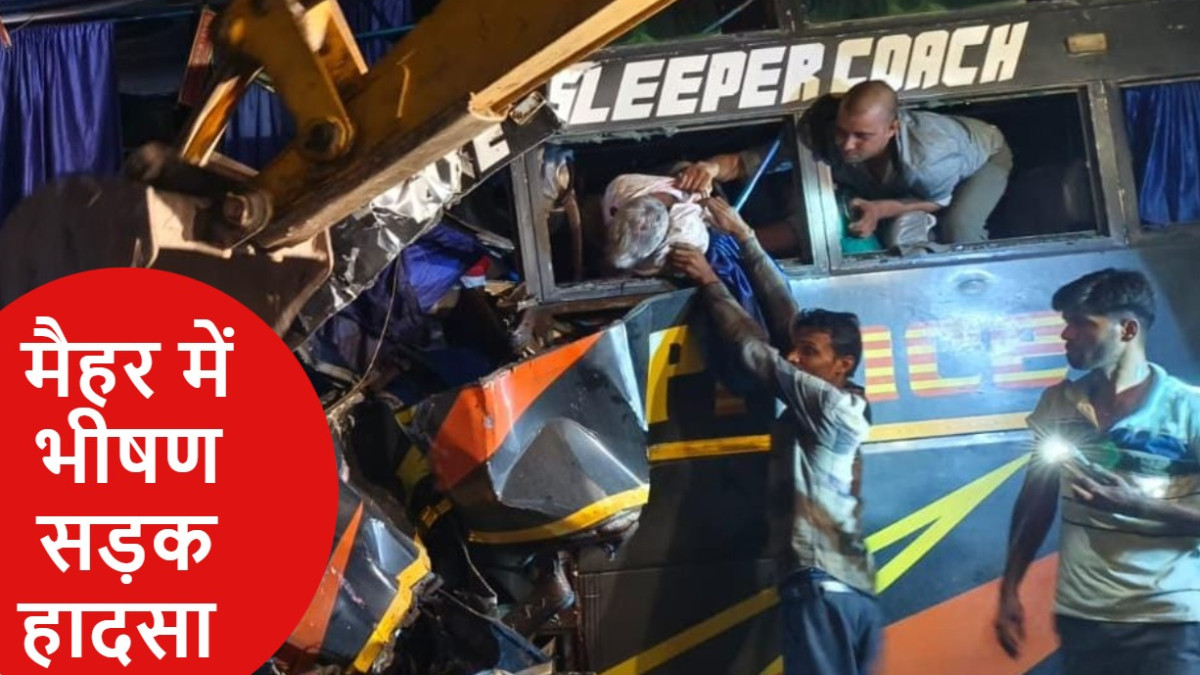 मध्यप्रदेश के मैहर जिले में शनिवार (28 सितंबर) रात प्रयागराज से नागपुर जा रही यात्री बस हाइवा से टकरा गई। हादसे में 9 यात्रियों की मौत हो गई। जबकि, 24 घायल हैं।