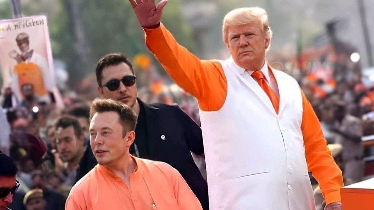 ट्रंप की जीत के साथ ही सोशल मीडिया पर प्रधानमंत्री नरेंद्र मोदी और मुख्यमंत्री योगी आदित्यनाथ की रैली की एक तस्वीर भी वायरल हो रही है। मई 2024 की इस तस्वीर को एडिट कर उसमें मोदी और योगी की जगह ट्रंप और एलन मस्क का चेहरा लगाया गया है। तस्वीर के साथ यह संदेश भी दिया गया कि "अमेरिका में भी हिंदुत्व का जलवा, भगवा का परचम"। हालांकि, यह तस्वीर असली नहीं है और सोशल मीडिया पर इसे लेकर विवाद छिड़ गया है।