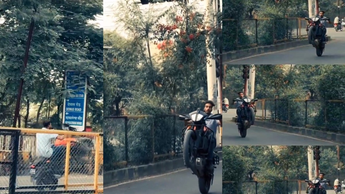 मध्यप्रदेश के उज्जैन में एक युवक का बाइक स्टंट करते वीडियो वायरल हो रहा है। जिसके बाद एक्शन में आई पुलिस गाड़ी नंबर के आधार पर युवक के घर पहुंच गई। युवक को फटकार लगाते हुए उसके ऊपर चालानी कार्रवाई भी की गई। पुलिस ने बाइक को भी जब्त कर लिया है।