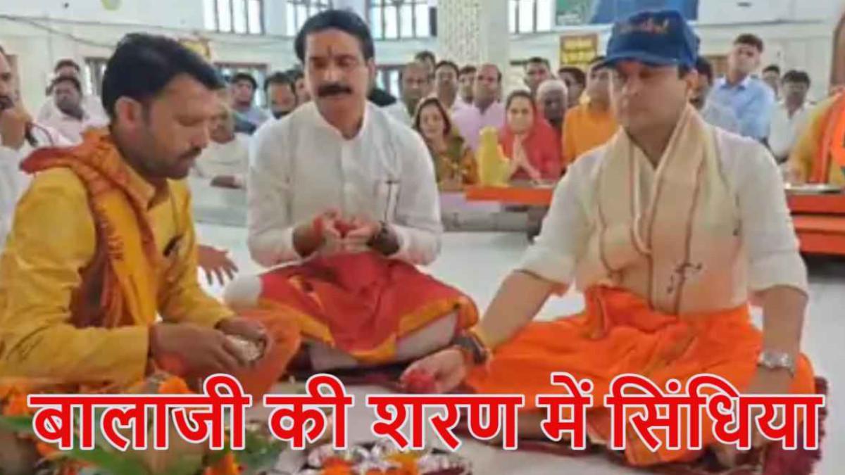 गुना दौरे पर केंद्रीय मंत्री: बालाजी सरकार के किए दर्शन, कंधे पर कांवड़ उठाकर चले ज्योतिरादित्य सिंधिया