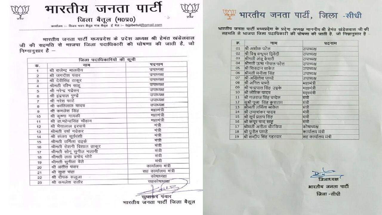 बीजेपी ने सीधी और बैतूल जिले में नियुक्त किए नए पदाधिकारी, देखें सूची