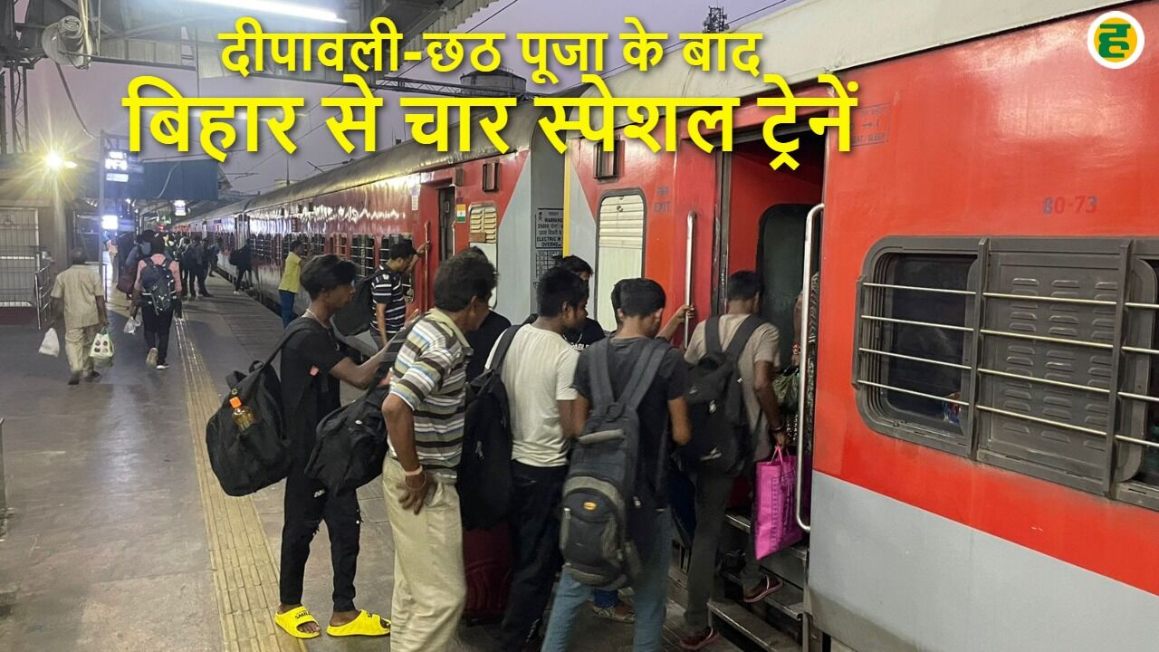 दीपावली-छठ के बाद घर लौट रहे यात्रियों के लिए रेलवे की 4 स्पेशल ट्रेनें.