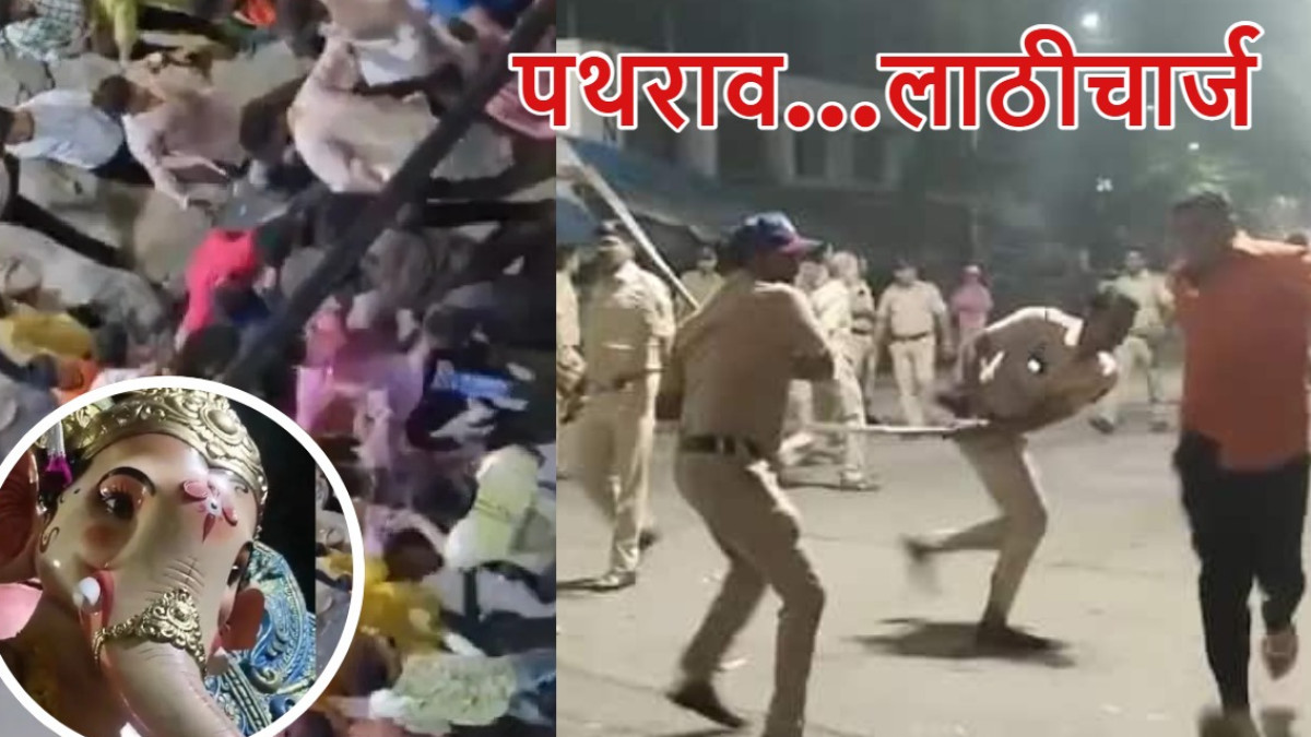 Ganesh Utsav in Bhiwandi: महाराष्ट्र में ठाणे जिले के भिवंडी में गणपति विसर्जन चल समारोह में मंगलवार को हंगामा हो गया। हिन्दुस्तानी मस्जिद के पास भगवान गणेश की प्रतिमा पर पथराव की अफवाह से लोग भड़क गए और 2 गुटों में जमकर झड़प हुई। स्थिति को नियंत्रित करने पुलिस को लाठीचार्ज करना पड़ा। फिलहााल, कुछ लोगों को हिरासत में लेकर पूछताछ की जा रही है।