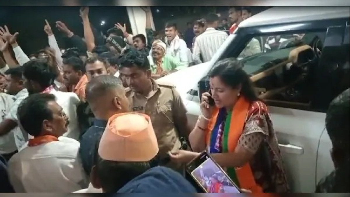 - नवनीत राणा, दरियापुर से बीजेपी के उम्मीदवार रमेश बुंडिले के समर्थन में प्रचार करने खल्लार गांव पहुंची थीं। उनकी रैली के दौरान हंगामा शुरू हो गया। वीडियो में नवनीत राणा को समर्थकों के साथ भीड़ की ओर बढ़ते और सुरक्षाकर्मियों को उन्हें बचाने की कोशिश करते हुए देखा गया।