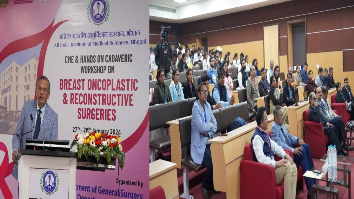 एम्स भोपाल में शनिवार को 'ब्रैस्ट ओन्कोप्लास्टिक एंड रीकंसट्रक्टिव सर्जरी' पर कार्यशाला का आयोजन किया गया। इसमें देशभर से एम्स के 150 से अधिक डॉक्टर शामिल हुए।