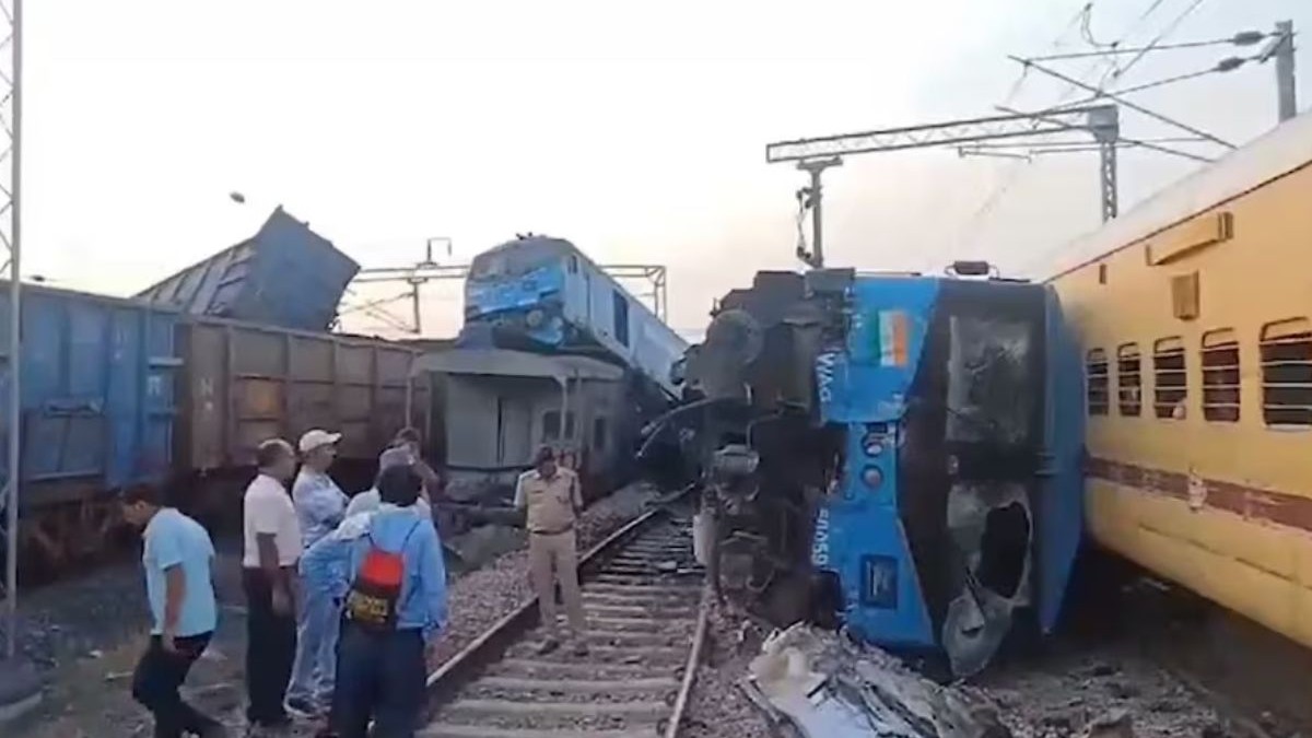 एक मालगाड़ी का इंजन पटरी से उतरकर पैसेंजर ट्रेन से टकरा गया। pic.twitter.com/bH7eLHAmUW