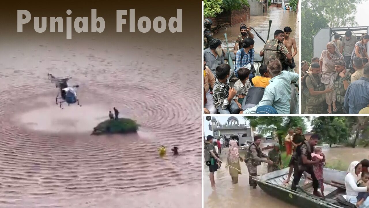 Punjab Flood: पंजाब के कई जिलों में बाढ़ के हालात हैं। इसकी वजह से सैकड़ों गांव पानी में डूब गए हैं। हजारों लोग घरों से पलायन करने को मजबूर हैं। हर तरफ बचाव कार्य जारी है।