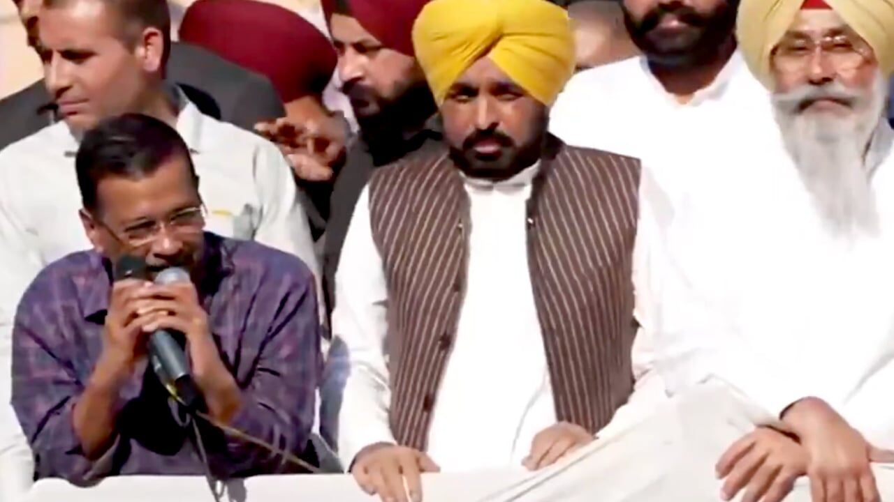 तरनतारन में रोड शो के दौरान आप सुप्रीमो अरविंद केजरीवाल और पंजाब के सीएम भगवंत मान।
