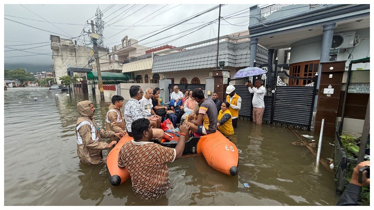 दरगाह क्षेत्र समेत कई जगहों पर जलभराव इस हद तक हो गया कि तेज बहाव में लोग बहने लगे। दुकानों के बाहर खड़े स्थानीय लोगों ने तत्परता दिखाते हुए रस्सियों की मदद से कई लोगों को सुरक्षित बाहर निकाला। यह दृश्य शहर में भारी जलभराव की गंभीरता को दर्शाता है।