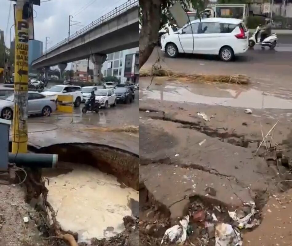 Rajasthan: जयपुर में पहली बारिश में धंसी सड़क, ट्रैफिक प्रभावित