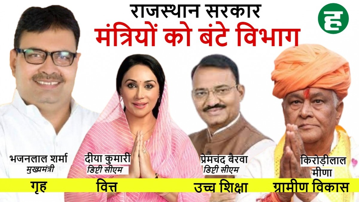 राजस्थान में भजन सरकार के मंत्रियों को विभागों का बंटवारा: CM ने रखे गृह,आबकारी समेत 8 विभाग; जानिए किसे क्या मिला?