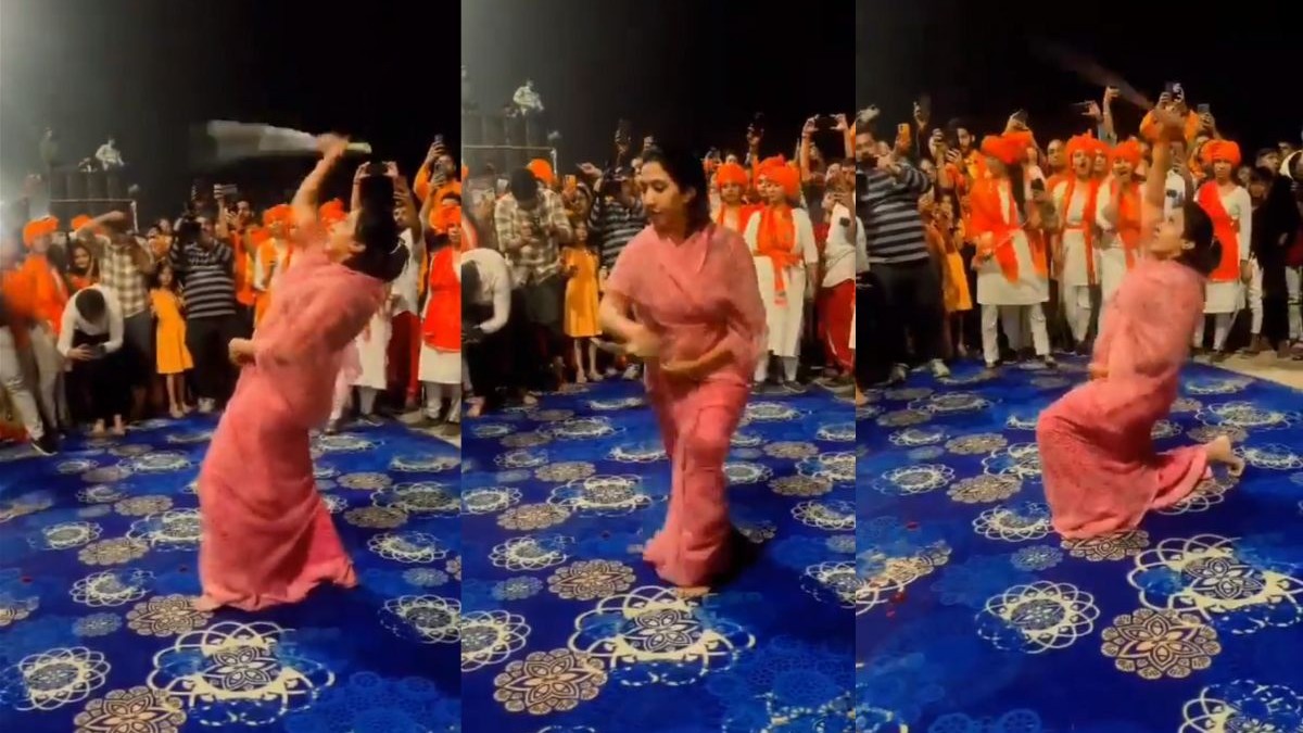 Deputy Chief Minister Diya Kumari demonstrated sword: भारत के पारंपरिक परिधान साड़ी में एक महिला तलवार से हैरतअंगेज करतब दिखा रही है। सोशल मीडिया पर यह वीडियो तेजी से वायरल हो रहा है। दावा किया जा रहा है कि वीडियो में दिख रही महिला कोई और नहीं, राजस्थान की उप मुख्यमंत्री दीया कुमारी हैं। लेकिन वीडियो वाकई दीया कुमारी का है, हरिभूमि इसकी पुष्टि नहीं करता है। एक मिनट 21 सेकंड के इस वीडियो में डीजे पर धार्मिक गाने बज रहे हैं। आसपास भगवा कपड़ों में लड़कियां मौजूद हैं। इस दौरान महिला ने अपने हाथों में तलवार लेकर ऐसा करतब दिखाया कि लोग अचंभित रह गए। उनका जोश देखने लायक था। करतब के अंत में महिला ने तलवार को माथे से लगा लिया।