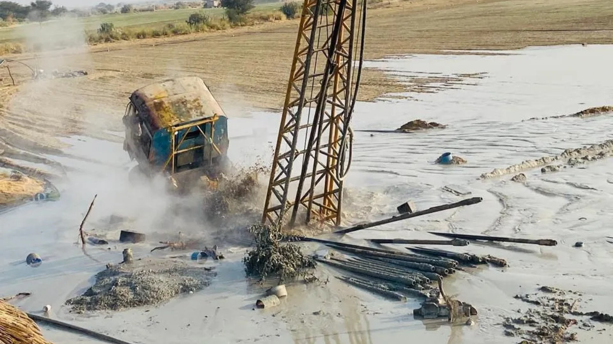 Rajasthan News: राजस्थान के जैसलमेर में एक ट्यूबवेल की खुदाई के दौरान इतना पानी निकला कि जमीन में ट्रक समा गया।